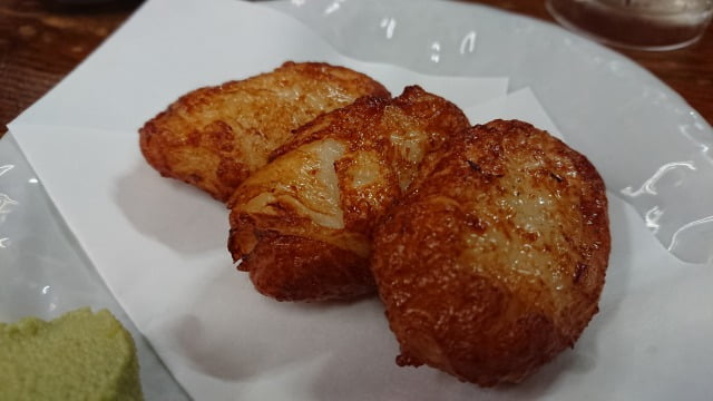 北千住・千住の永見、一人でさくっと呑む [レストラン訪問]居酒屋2020.04.082024.02.05北千住ってのは、手頃な大衆酒場が多くて楽しくていいね。この雑多な感じがなかなか素敵。まずは、サワーもので喉を潤し、おとなしく、おひたしをつまみつつ、煮込みを頬張る。あってりなスタイルでよい。ここで、お酒を入れつつ、千住に来たら、そりゃあ千住揚げを注文するしかないわな。当店名物ってあるので。まぁ揚げたてはそりゃあ美味いわな。ざっくりさっくり北千住を感じながら呑むのにええわな。千住の永見 (居酒屋 / 北千住駅、牛田駅、京成関屋駅) 夜総合点★★★☆☆ 3.4