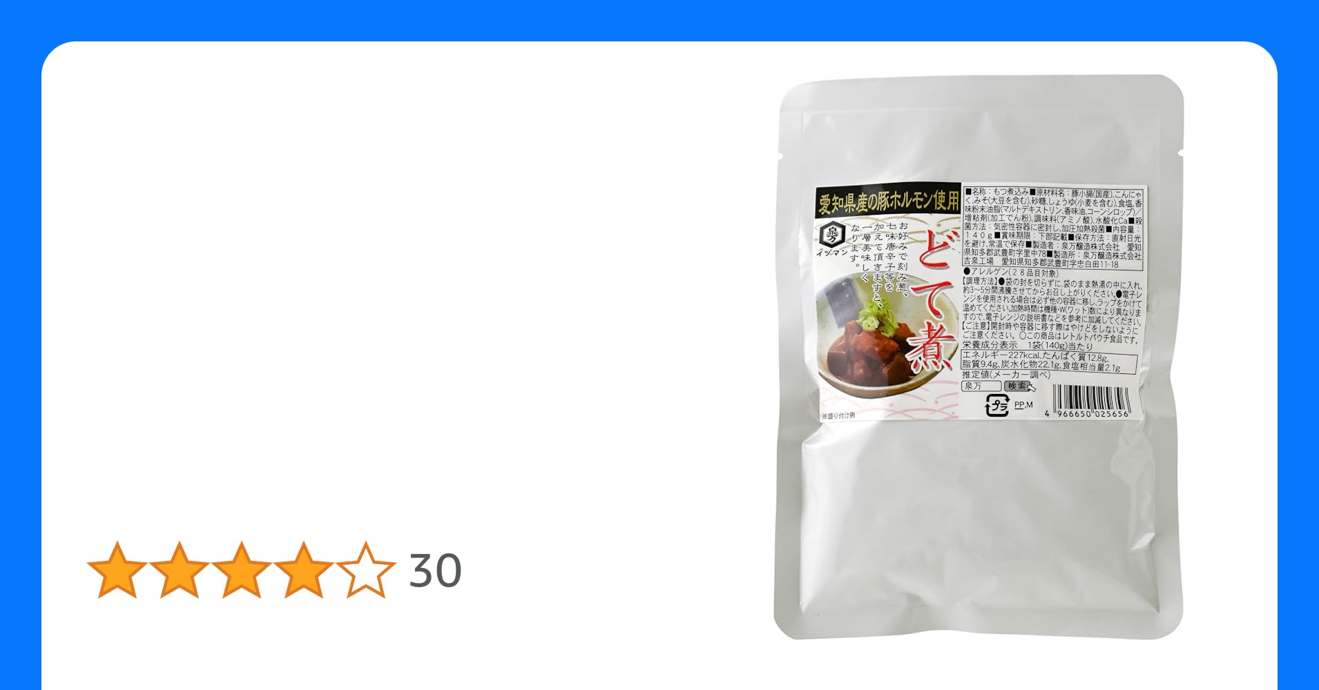 厳選した愛知県産の豚ホルモンを、臭みを取り、味噌だれでやわらかく煮込んだどて煮です。豚ホルモンと角切りこんにゃくに、赤味噌独特の深い味わいが染み込んだ、名古屋名物居酒屋の味。温めるだけで、おうちやキャンプで簡単にお楽しみいただけます。この商...