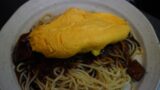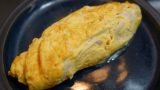 2.卵を溶いてフライパンに油を馴染ませ、オムレツを焼き、1に乗せる。