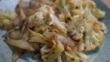 今回は、キャベツとニラだけ突っ込んで炒めます。