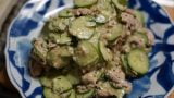 2.素揚げした野菜にバルサミコ酢をたっぷりかけ、軽く砂糖も加えてフライパンで加熱して絡めたのち、器に盛ってしばらく寝かせたら盛り付けて完成。