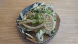 2.スティックセニョールとねぎをオリーブオイルで焦がすように焼く。軽く塩をふる。