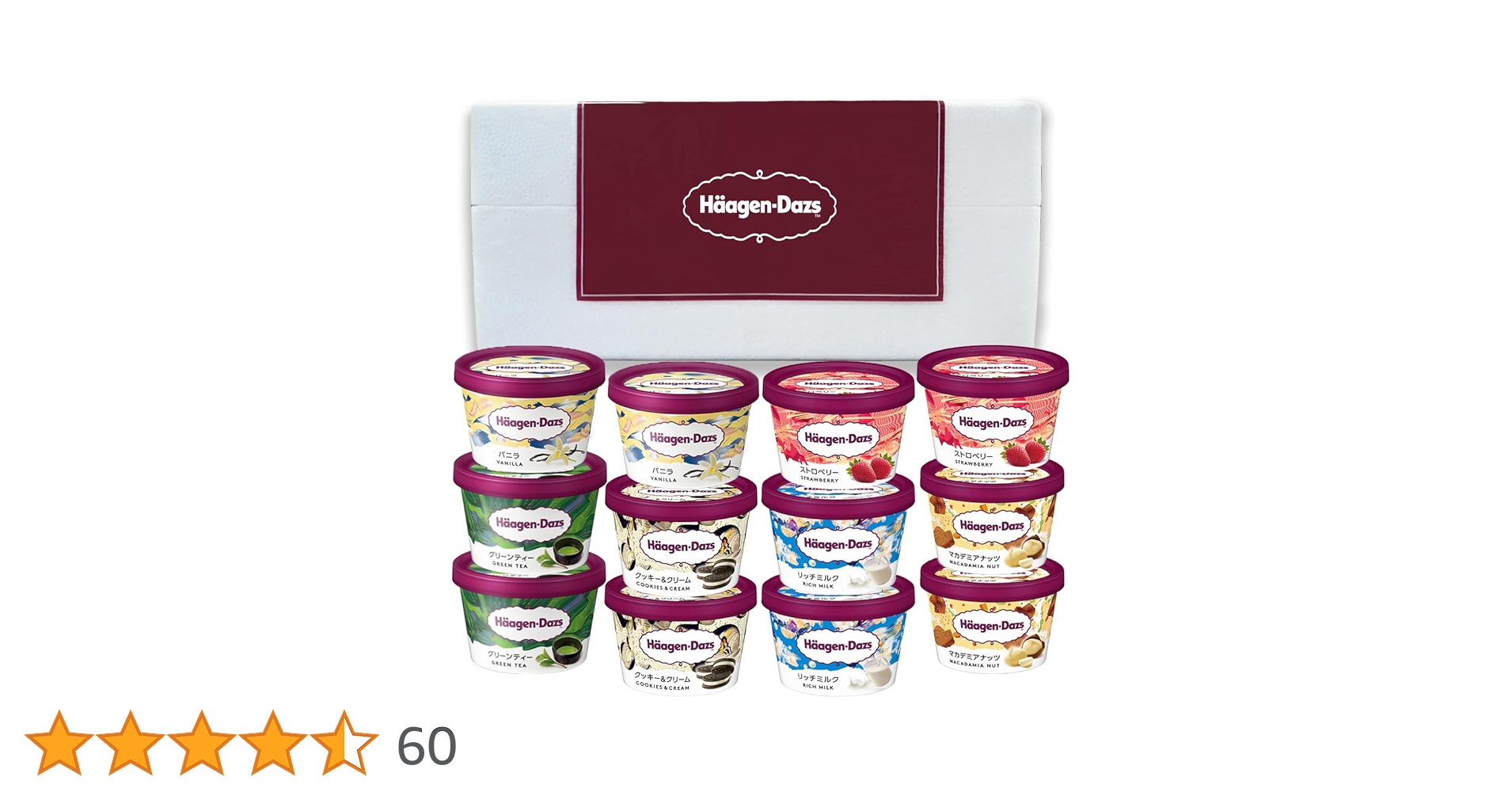 ハーゲンダッツの色々なフレーバーを楽しめる、ミニカップ6種、12個のセット贈り物に最適な、ハーゲンダッツのアイスクリームのギフトセット。ハーゲンダッツを代表する、誰もが好きなフレーバーを組み合わせました。6種のフレーバーを2個ずつ楽しめる、...