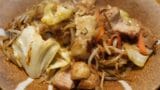 3.蒸しあがる手前で、加熱したジャガイモをくわえて蒸す。蒸し上がったらしばらく寝かして芋に汁を吸わせて完成。