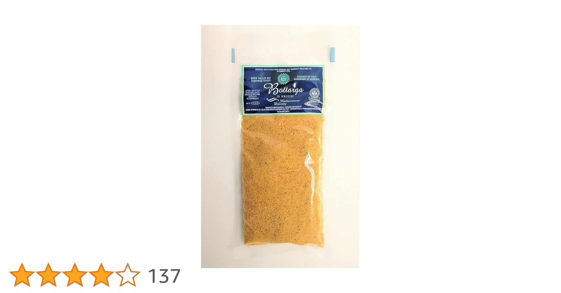 南西サルデーニャ島のBuggerru村にある昔ながらの製造方法を利用して、小さな職人系の製造者より手作業で加工されます。ボラの卵巣を丁寧に洗浄し、よけな塩をかけずに2週間ほど潮風で乾燥させます。注文は入りましたら粉砕にされますので香が抜群で...