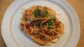 トマトソースを作ってた鍋。もういろいろこびりついてるし、すぐに洗うのもなかなかなやつ。