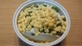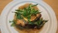 2.適当に切った水菜と1を皿に盛ってポン酢をかけて完成。