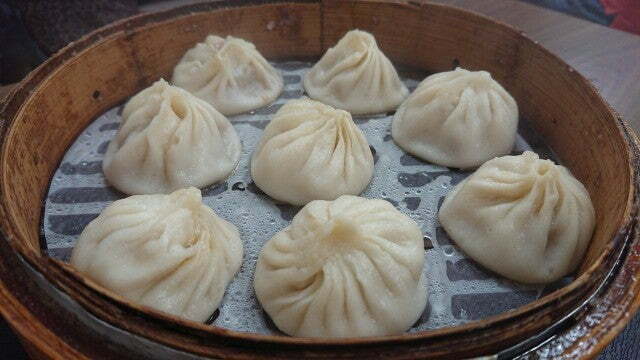 朝からパクつける小籠包は、生地厚め。生姜と酢でガンガンいく。