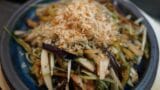 2.フライパンにサラダ油を加えて加熱し、適当に切った青菜を加えて炒め、軽く塩で味をつけたのち1を加える。