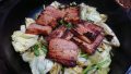 醤油系のタレにつけられた河豚の身と一緒に溶岩プレートが登場し、