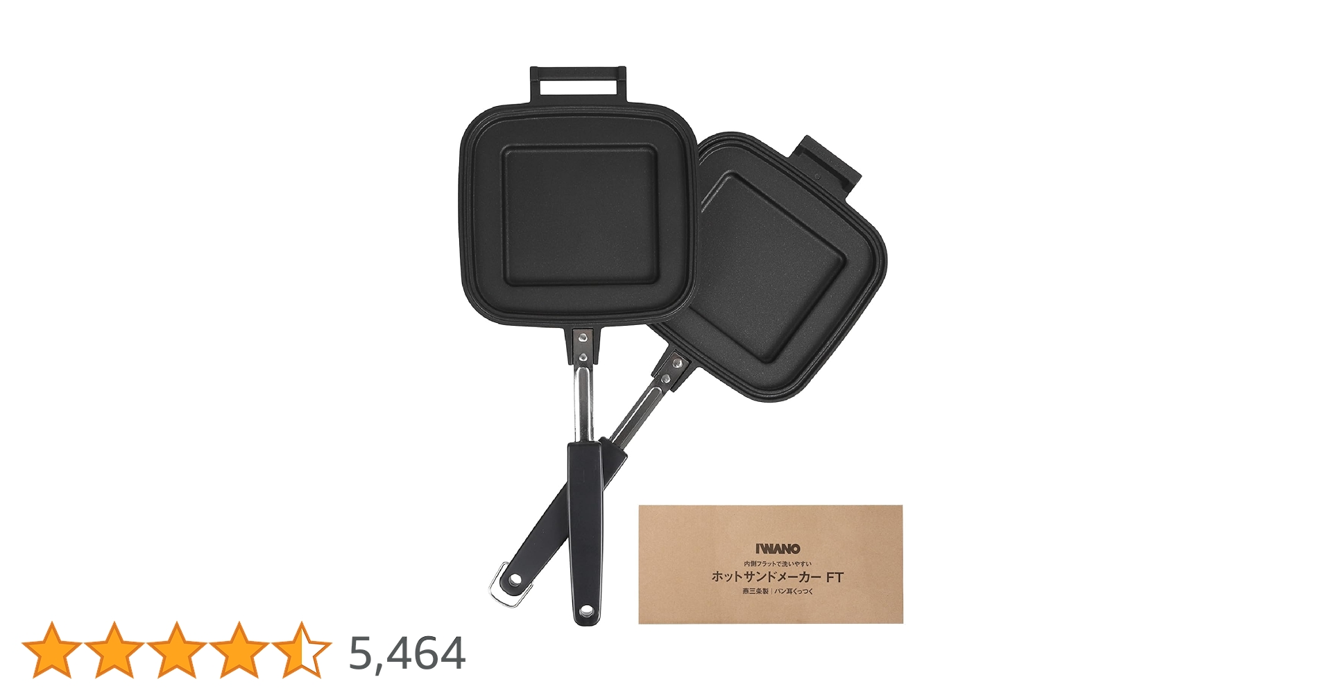 【 IWANO × 燕三条 】 日本製 直火式 ホットサンドメーカー ( パン耳圧着/両面フラット ) 耳まで焼ける 上下取り外し可能 フッ素樹脂加工 PFOSフリー PFOAフリー 直火 対応 ホットサンド アウトドア キャンプ にも 2枚のフライパンとしても使用可能 フラット面は使いやすさ◎ 丸洗いもOK (FT)