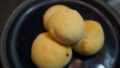 2.100g(1袋)の場合、生地を4分割して、丸めて、クッキングシートをひいた天板に並べる。