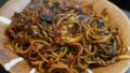 牛赤身肉と下処理したたけのこを同じような大きさに切り揃え、炒めてさっと醤油で味をつけ、仕上げに黒胡椒をたっぷり散らした一皿。日本酒とかに合うし、飯のおかずの一皿にもなる。俺は黒胡椒多めで。