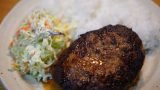 余ったハンバーグと、出来合いのミートソースとチーズとごはん。全部丼に盛ってレンジアップするだけ。あとは混ぜて美味しく食べるだけ。
