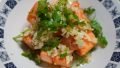 2.グレープフルーツの搾り汁と削った皮にEXVオリーブオイルと塩を混ぜたドレッシングを1にまとわせて盛り付けて完成。