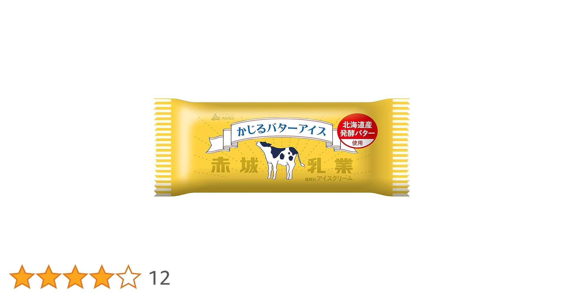 ふつうにバターを75ml齧ると約540キロカロリーくらいになるが、このバターアイスだと75ml(1本)140キロカロリーなので、普通にバターを齧るよりもヘルシー(というか、普通はバターをかじらない)な、赤城乳業のかじるバターアイス。