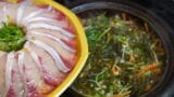 3.カキがほんのりと白くなり、弾力が出てくるくらいになったら食べ頃。ポン酢や柚子胡椒と一緒に野菜とともに食べる。