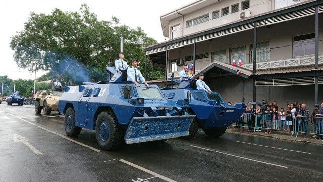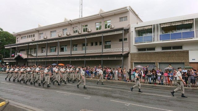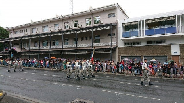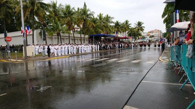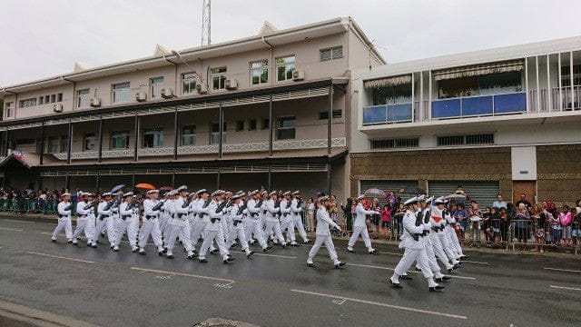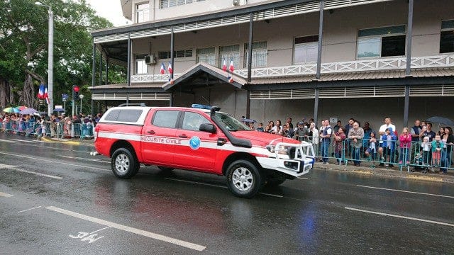 ニューカレドニア/ヌメア・フランス革命記念日のパレード 旅2018.09.202024.09.22ニューカレドニアを旅した初日は、ポツリ雨。しかも、フランス革命記念日当日にぶち当たってしまったわけです。ヌメア・マレシャルフォッシュ通り(近くにマルシェや美術館とかがある)で、パレードをするっていうので、見学しました。バグパイプを吹く隊列からニューカレドニアの軍いろんな部隊これは海軍だっけか。そして、こちらは警察だっけか。最後は、消防救急。国と人を護るヒーロー達の、平たく言えば軍事パレードでした。