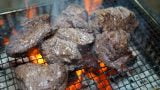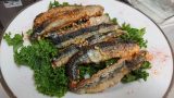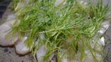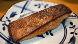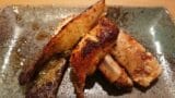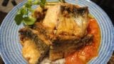 2.醤油:みりん:=2:1:1くらいで混ぜたタレを絡め焼いたら、盛り付けて、擦ったワサビ添えて完成。