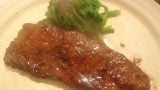 マグロのほほ肉が安かったので、シンプルに照り焼きに。ワサビを添えて。