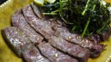 1.マグロほほ肉に塩をさっとふり放置。しばらくしたら水気を切って、サラダ油をひいたフライパンで焼く。