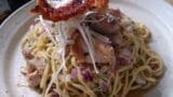 ここってさ、焼きそばの麺を自家製麺していて、茹でたやつを焼くスタイルだったよな、そして麺も割と太めだったなって思って。あぁじゃあ二郎を焼きそばにしてみたらどうかなって思ってやってみたわけ。