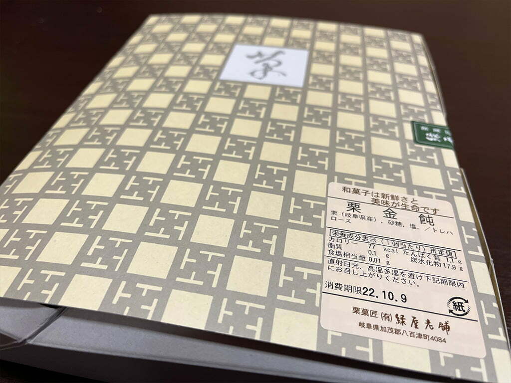 それが、仲間が「これ美味いから!」と持ってきた八百津の緑屋老舗の栗金飩。これが本当にすごかった。