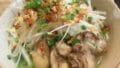 3.鶏手羽先の骨と肉をはずして、肉に軽く白だしをからめておいたものと、たっぷり刻んだ万能葱と、たっぷりすりおろした生わさびをあしらって完成。