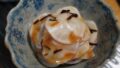 3.両面焼けたら、皿に盛って、生イカそうめんをたっぷり乗っけて完成。