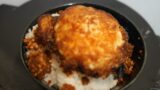 2.卵を溶いてフライパンに油を馴染ませ、オムレツを焼き、1に乗せる。
