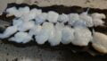 焼きあがった餃子。羽のついたもっちり焼き餃子。ちょうどいい美味さ。