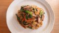 3.両面焼けたら、切り分けて盛り付けて完成。タレで食べる。