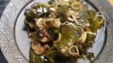 愛知県三河産の初摘み青混海苔を使っています。上質な初摘みだけのかなり貴重な海苔です。このレベル感だからこそ、シンプルすぎる一皿が可能となるんだと思っています。