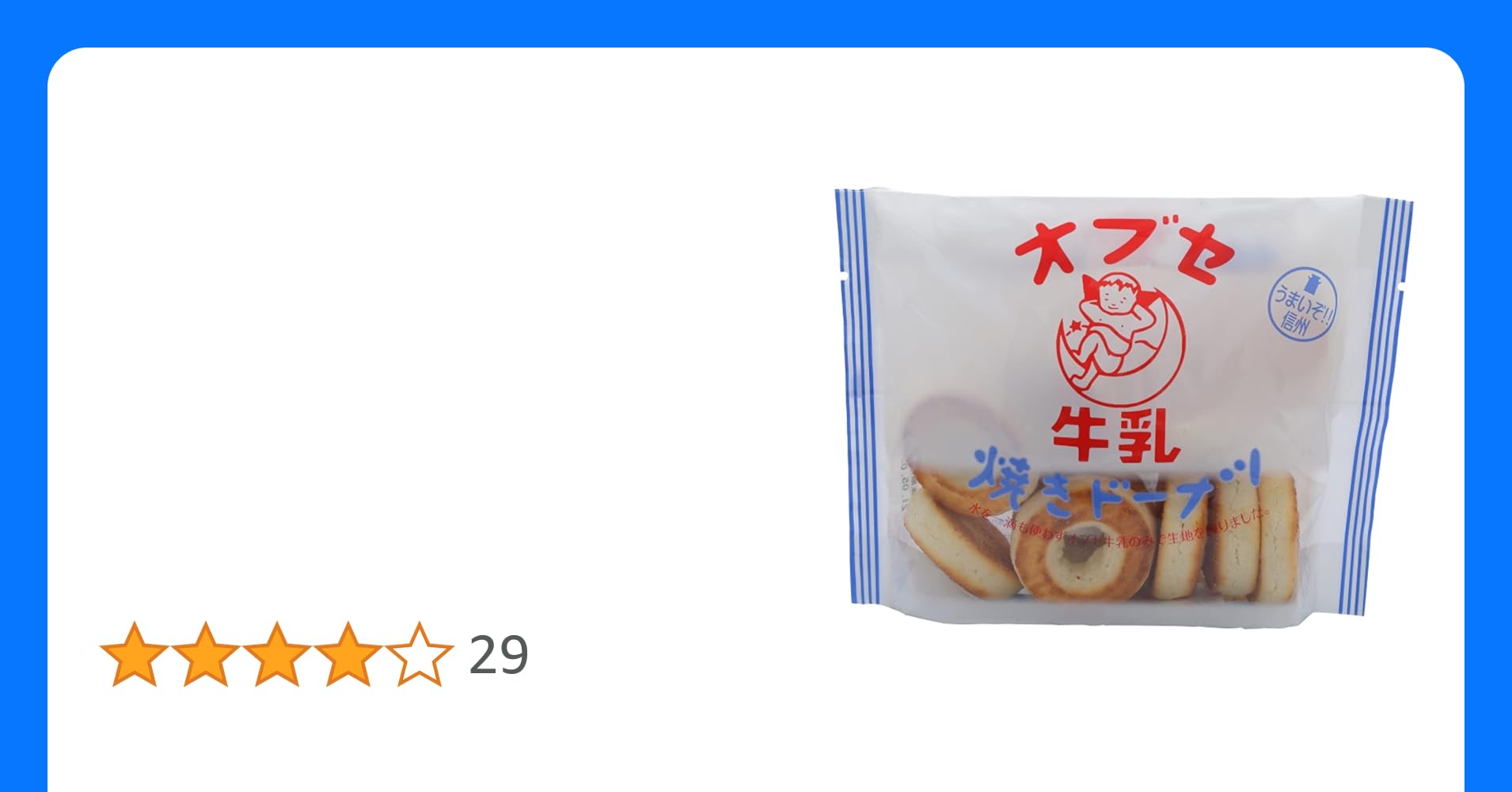 水を一滴も使わずにオブセ牛乳のみで練った生地を、油で揚げずに焼き上げたかわいいドーナツ型の焼き菓子です。サクッとした食感ですが口解けがよく、牛乳本来のやさしい甘さが引き立つのが特徴です。オブセ牛乳とは、信州小布施にある80℃15分の殺菌製法...