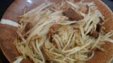 1.卵を溶き、ほぐしたサラダチキンを加えて混ぜ、黒胡椒をかるく振る。サラダチキンに味が入っているので味付けの必要はないが、欲しければ塩を入れる。俺は入れない。
