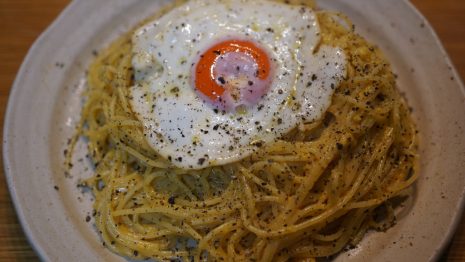 前回2つに比べたら、いきなり貧乏感が増しておりますが、卵好きにはたまらんかと思います。卵、そこそこにたくさん使います。1皿に対して最低でも3つはいきます。チーズも、ええもん使って欲しいし、黒胡椒もええもんがいい。この時点で貧乏人感が消え失せ...