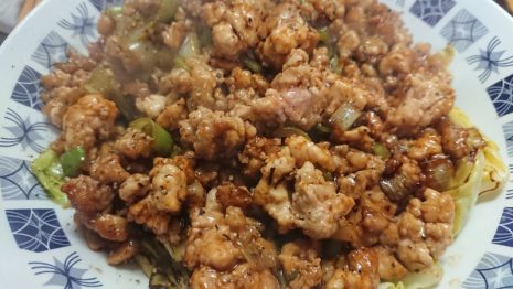 豚挽肉のオイスターソース炒めに焼きキャベツ