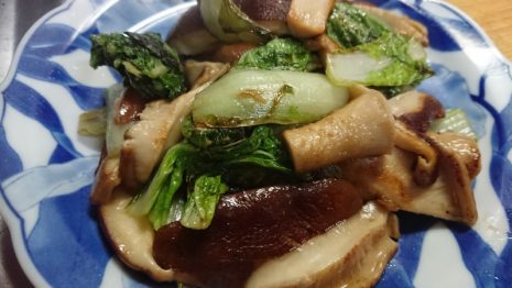 シンプルに一品を作る、青梗菜と生椎茸の醤油炒め