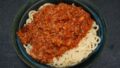 カラヒグ麺を使った、ふつうのご家庭のミートソーススパゲッティ