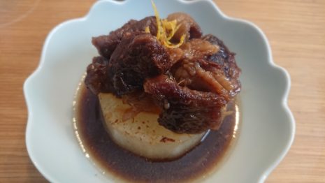 大根を煮ます。牛すじを煮込みます。2つを合体させて、刻んだ柚子をあしらうと、牛すじ大根になります。牛すじと大根を一緒に煮るのが一般的だとは思うのですが、煮込みを別にして合わせたら、それはそれで美味しい!食べ進め方などで味わいを変化させられる...