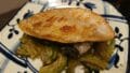2.卵を溶いてかつおだしと塩をくわえて、オムレツにして、載せて完成。