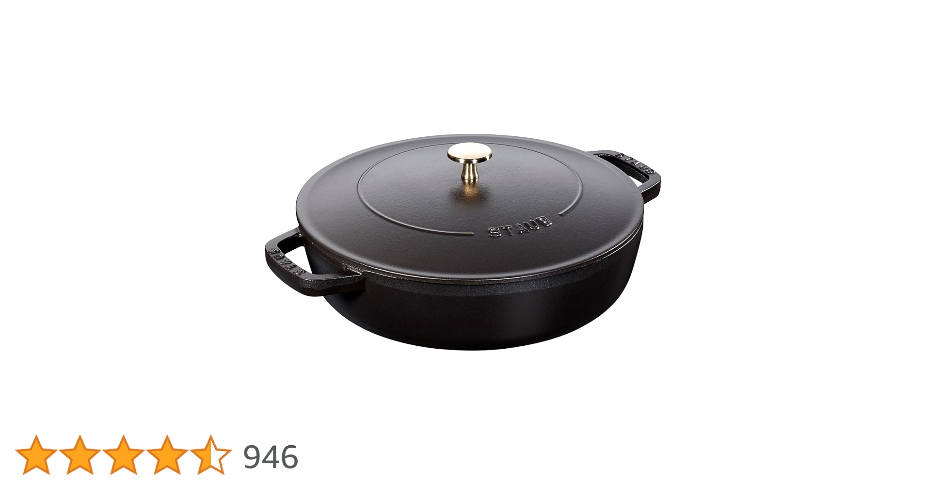 ストウブ(Staub) 「 ブレイザー ソテーパン ブラック 26cm 」 大きい 両手 鋳物 ホーロー 鍋 すき焼き IH対応 【日本正規販売品】 Braiser 40506-542