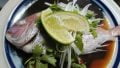2.三関せりを適当に切り分け、葉と茎と根をバランスよくまとめて、1で巻いて竹串で固定する。