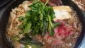 1.すき焼きの途中で、具材をどんと入れ加熱。