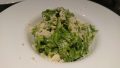 2.1と粉チーズ半量くらいと、ニンニク:松の実=2:1に、EXVオリーブオイルを加えてミキサーで攪拌し、塩と黒胡椒をふって味を整えて、ソースを作る。