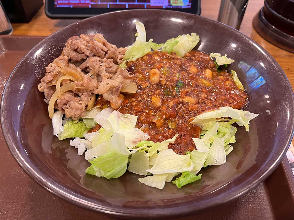 すき家・夏季限定、牛あいがけタコライス [レストラン訪問]ファストフード2023.06.262023.07.09まぁ、タコライスなんてものは、上ブレもしなけりゃ下ブレもしない、安定オブ安定のおいしいメニューなので、ただただ安全圏なノー挑戦メニューなので、ネタ的にはつまらないけど、味わい的には約束された味感が非常に強いです。普通に美味いです。都内某店で注文しましたが、たまにチーズ忘れてくるので、それは指摘しときましょう。お茶も出さないお店もあるのですが、もうこれは仕方ない。人材問題でしかないので。まぁ安定オブ安定の味わいがそこそこ価格で食べられるだけいいよねっていう感じでいましょう。