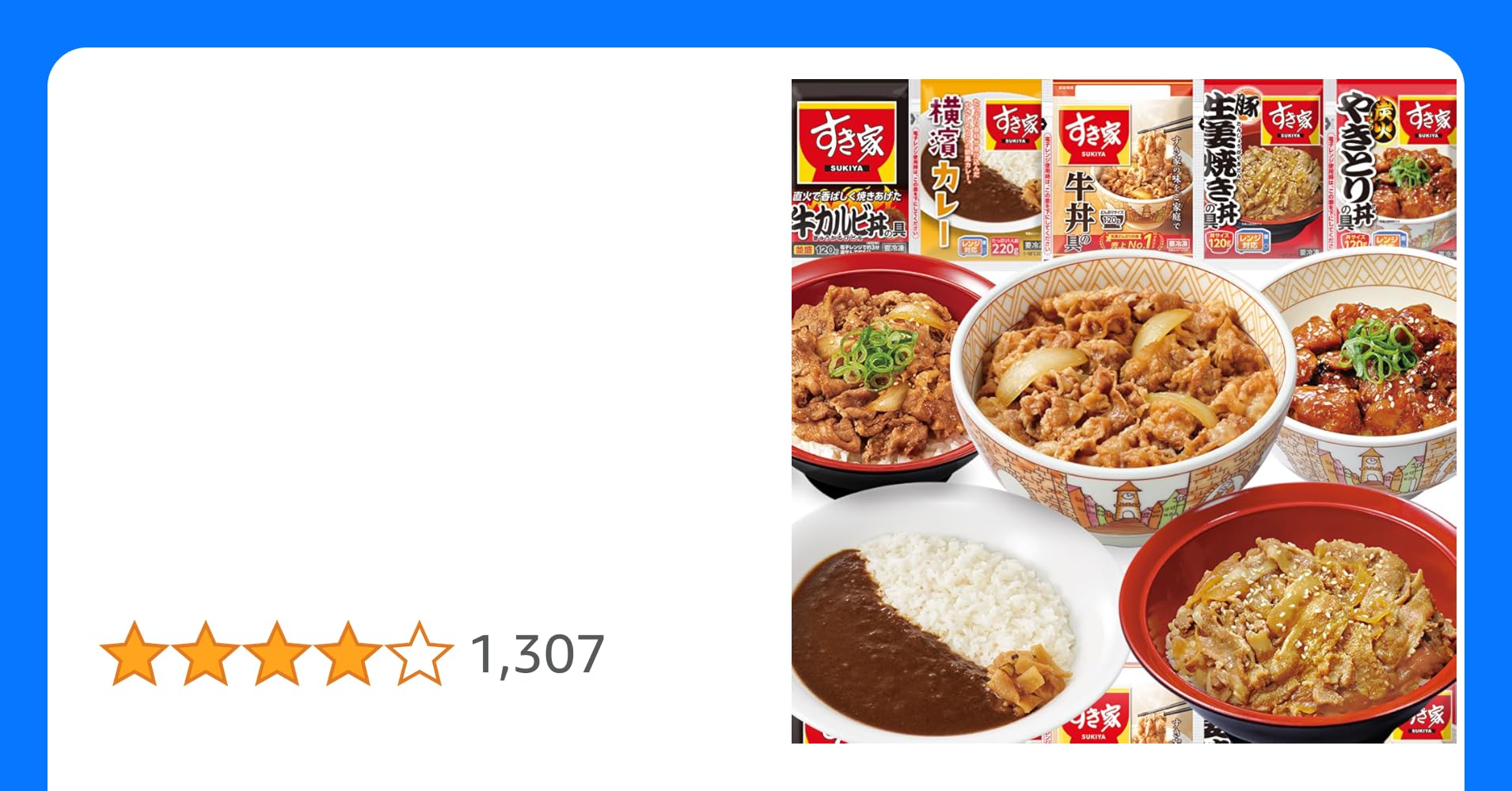 「手軽に色々な味を楽しみたい」そんなお客様のために、当店おすすめ商品を食べ比べしやすい“詰合せセット”を作りました。 すき家「牛丼の具120g」「牛カルビ丼の具120g」「豚生姜焼き丼の具120g」「炭火やきとり丼の具120g」「横濱カレー...