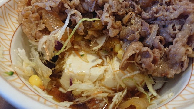 すき家の牛丼ライト肉大盛り [レストラン訪問]ファストフード2019.03.232024.04.03糖質オフのために食べてるようなもん、すき家の牛丼ライト。ポン酢がかかった豆腐と、サラダと 肉。他にアレンジのしようがない丼なんだけど、わりといけるっちゃあいける。まぁ、普通の日の普通の飯だったら、まぁこういうのでもいいけど、複数日は飽きる。