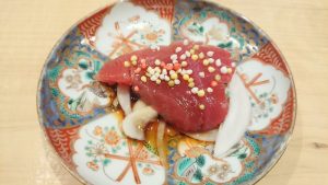 カラヒグ麺を使った、ゆかりバターシーフードスパゲッティ