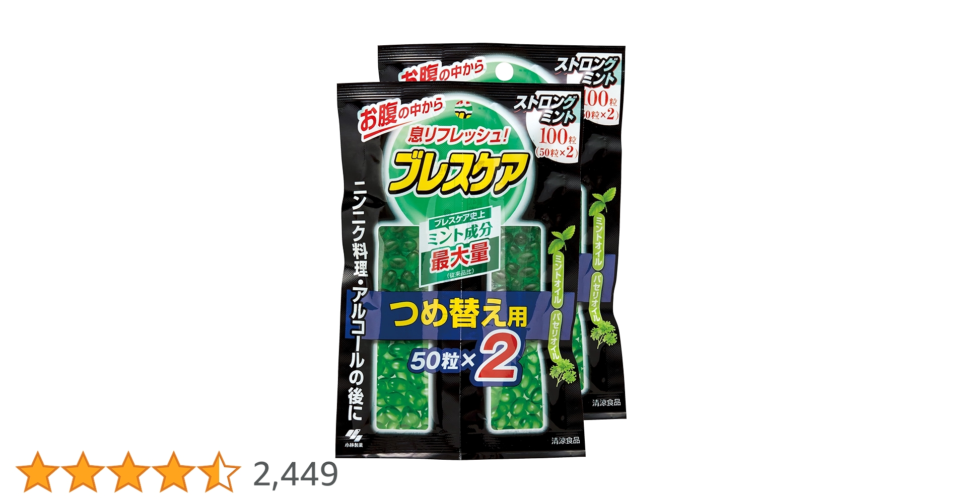 ブレスケア 【まとめ買い】 水で飲む息清涼カプセル ストロングミント 詰め替え用 100粒×2個(200粒)